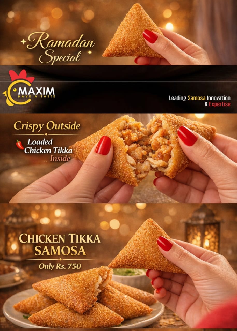Pakistan's most diverse and innovative samosa portfolio, featuring Chicken Fajita, Jalapeño, Pizza, Cheese, and exclusive Fish Samosas crafted to perfection.